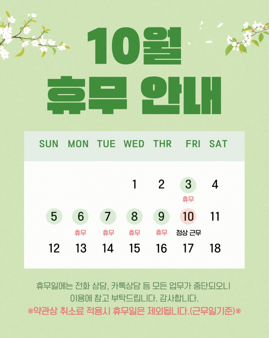 거산투어 10월 휴무일 안내