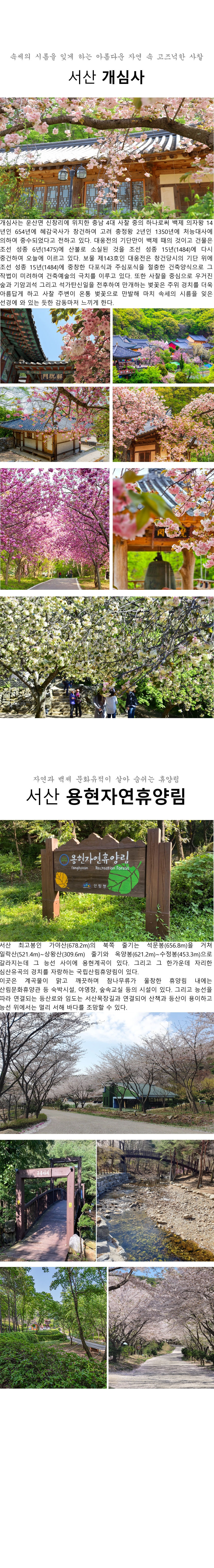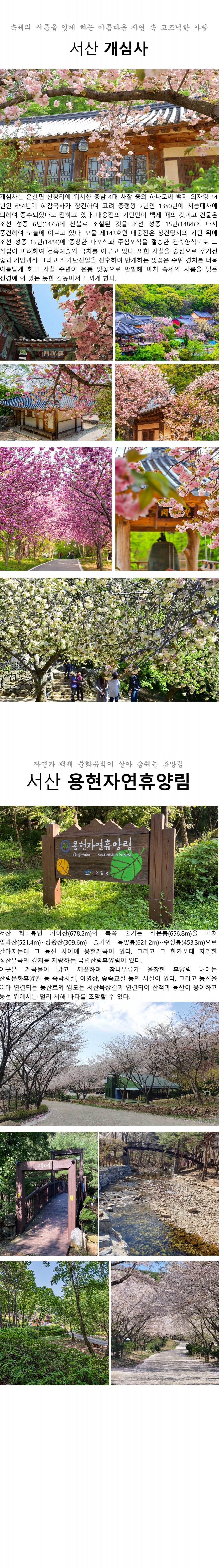 [리무진]서산 한우목장 웰빙산책로 벚꽃+개심사 왕벚꽃 겹벚꽃+용현자연휴양림