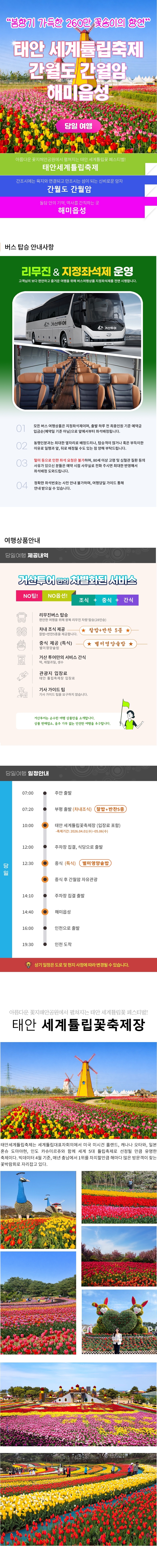 [리무진]태안 세계튤립축제+간월도&간월암+해미읍성 #축제기간: 2026.04.01(수)~05.06(수)